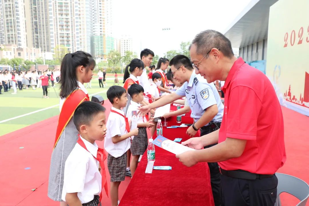 戴金波副局长致辞,他向全校师生致以新学年最美好的祝愿,希望学生们特别是2023首届初三学子珍惜学习时光,在好的校园环境中、好的老师引导下善思进取,取得好成绩。他叮嘱学生们加强锻炼科学防控,以健康的体魄、坚定的信念、顽强的毅力、刻苦的精神争分夺秒应对挑战。合作区正处于政策机遇叠加的黄金发展期,他激励南外深汕西全体老师们要勇立潮头,敢闯大风,为合作区教育现代化建设事业添砖加瓦、贡献力量!